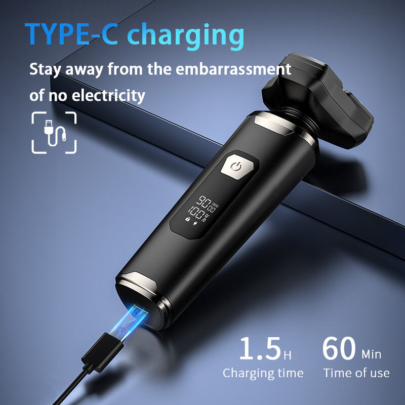 Die FK-399 spreek 'n algemene uitdaging aan by elektriese versorgingsgadgets: stadige oplaai en onduidelike batteryduur. Dit het 'n Type-C-oplaaiaansluiting—'n universele koppelstuk wat versoenbaar is met die meeste moderne selfoonopladers, kragbanke en rekenaars—wat die behoefte aan eie opladers elimineer. 'n Volledige oplaai duur slegs 1,5 uur, en die skeerapparaat lewer tot 60 minute aanhoudende gebruik—genoeg vir 15–20 skeerbeurte, afhangende van gebruik. Om gebruikers ingelig te hou, wys 'n slim LED-skermpie die werklike batterynivo (byvoorbeeld 100% by volle oplaai) en aktiveer 'n reisvergrendeling (via 'n 3-sekonde lang druk) om onbedoelde aanskakeling in tasse te voorkom. Dit sluit ook 'n skoonmaakherinneringslig in wat aangaan na ongeveer 30 minute se kumulatiewe gebruik, om gebruikers aan te moedig om higiëne te handhaaf. Hierdie slim funksies verbeter die gebruikerservaring en plaas die FK-399 as 'n premium, gebruikersgesentreerde produk.