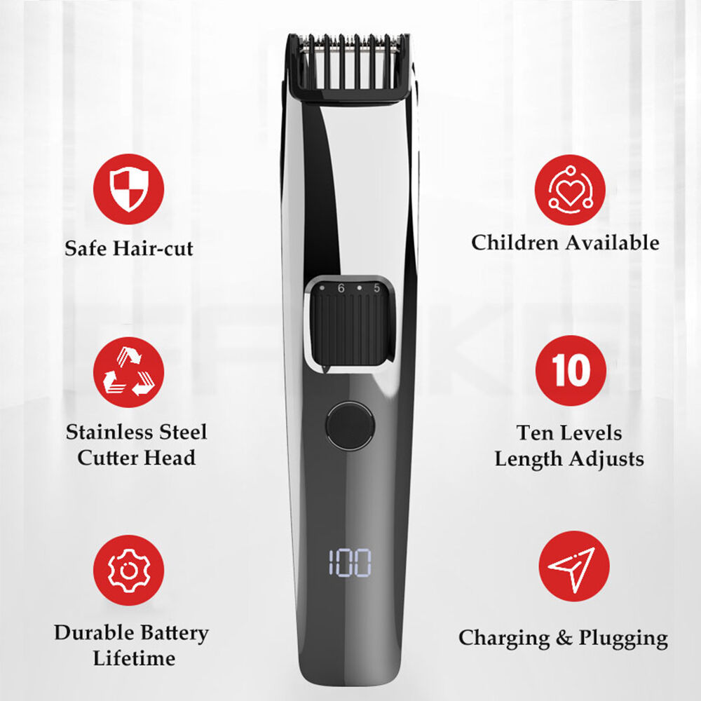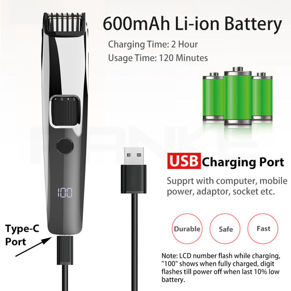 Die FK-302 maak grooming makliker met sy ingeboude LED-display wat die werklike batteryvlak en oplaai-status aandui. Tydens oplading toon die display die vordering; wanneer dit volledig opgelaai is, wys dit '100', sodat u weet die trimmer is gereed om te gebruik. Wanneer die batteryvlak daal tot 10%, knipper die display as herinnering—om onverwagse kragonderbrekings tydens 'n knip middel te hou (‘n algemene frustrasie vir kapskeerders sowel as tuisgebruikers).