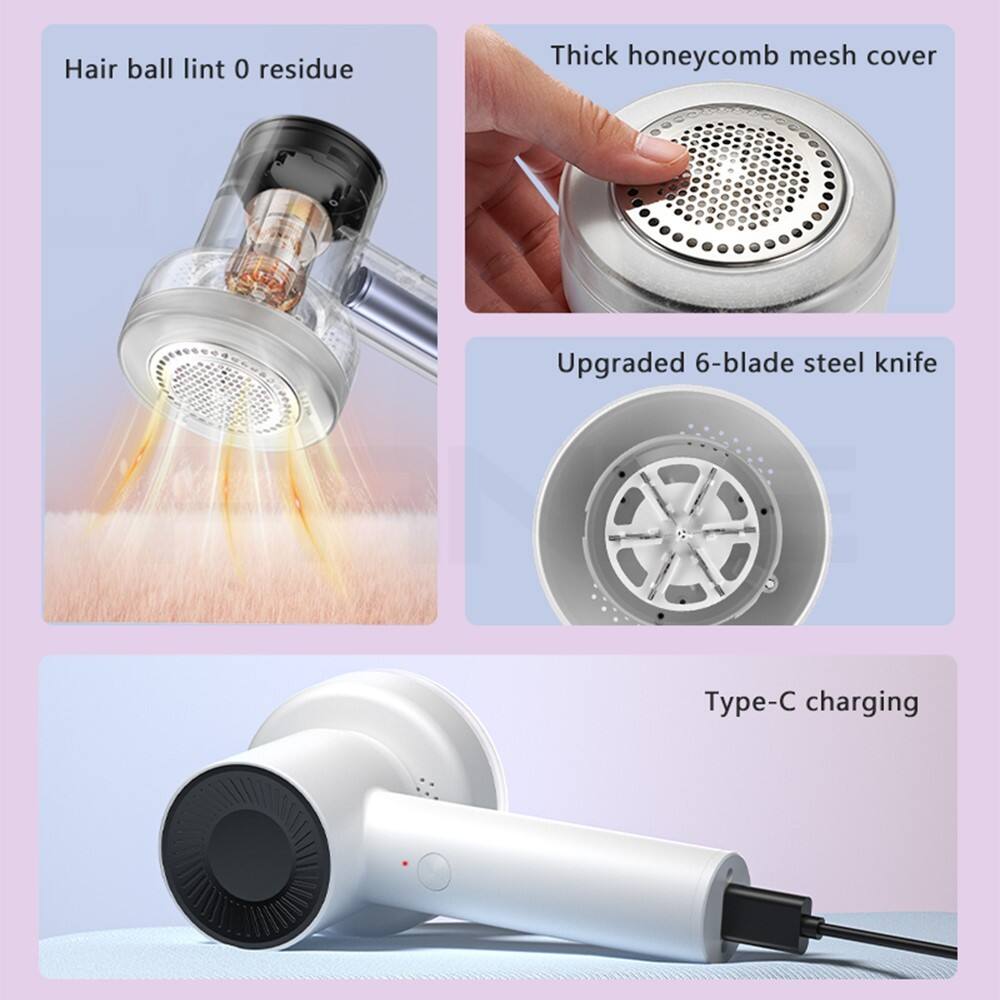 2. Upgraded 6-Blade Steel Blade: The improved 6-blade design provides faster and more thorough pilling removal, suitable for a variety of garment materials, including sweaters, coats, and even home textiles.