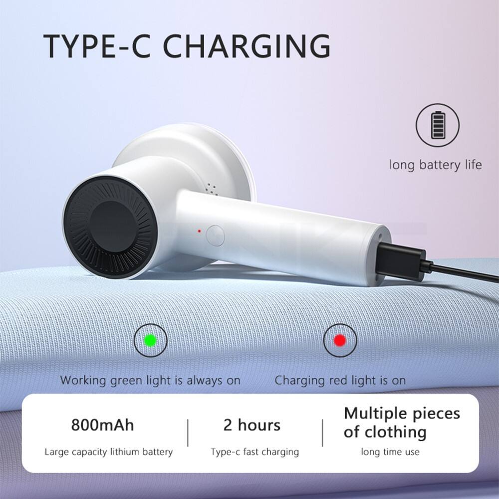 Included with your FK-113: a USB-C charging cable for universal power and a cleaning brush to keep the blades and mesh free of lint buildup. It’s not just a fluff remover—it’s a tool that elevates the quality and longevity of your textiles, one smooth finish at a time.