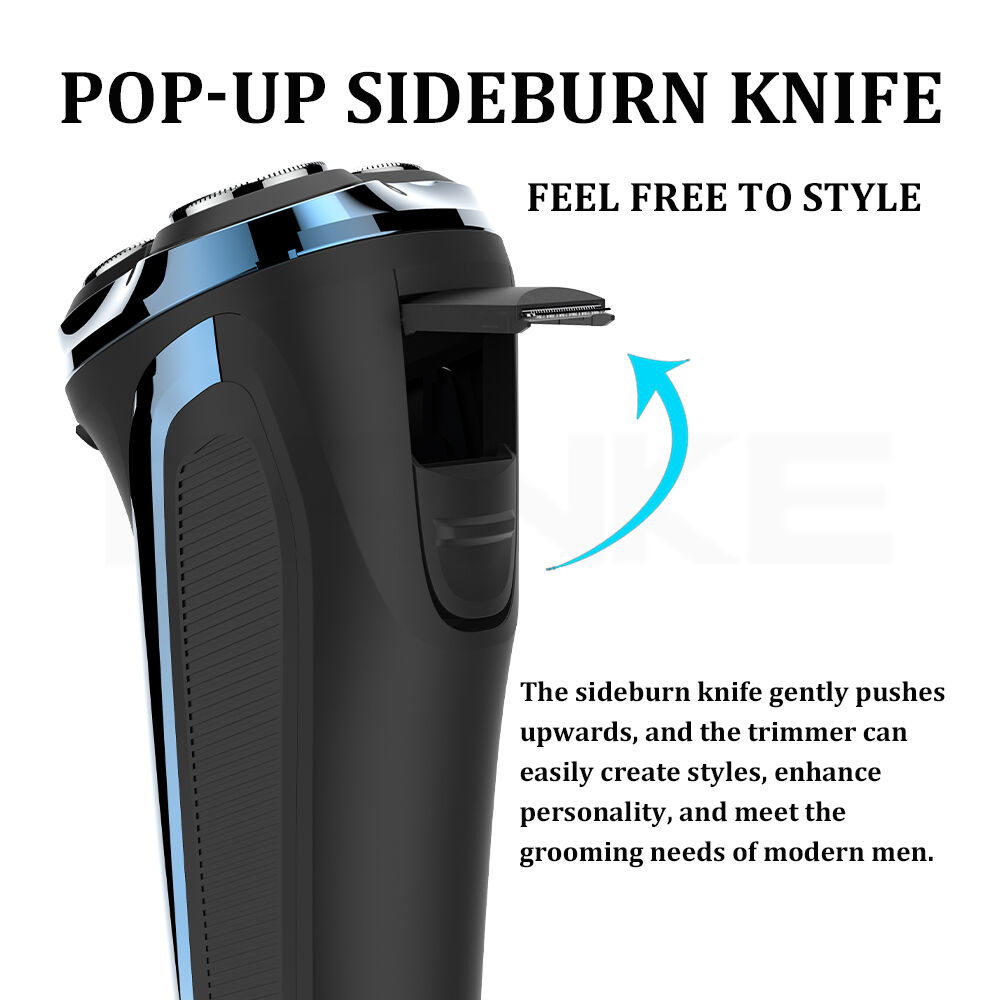 The FK-375 prioritizes usability with two key features: its easy-open head and ergonomic grip. The shaving head pops open quickly, allowing thorough cleaning of trapped hair or residue—preventing buildup that dulls blades or causes irritation. This extends the shaver’s lifespan, ensuring it performs like new for years. The ergonomic grip, crafted from durable ABS+POM material, fits naturally in the hand, reducing fatigue during longer grooming sessions (e.g., shaping sideburns with the pop-up trimmer). Its streamlined design also prevents slippage, even when wet—critical for shower shaving.