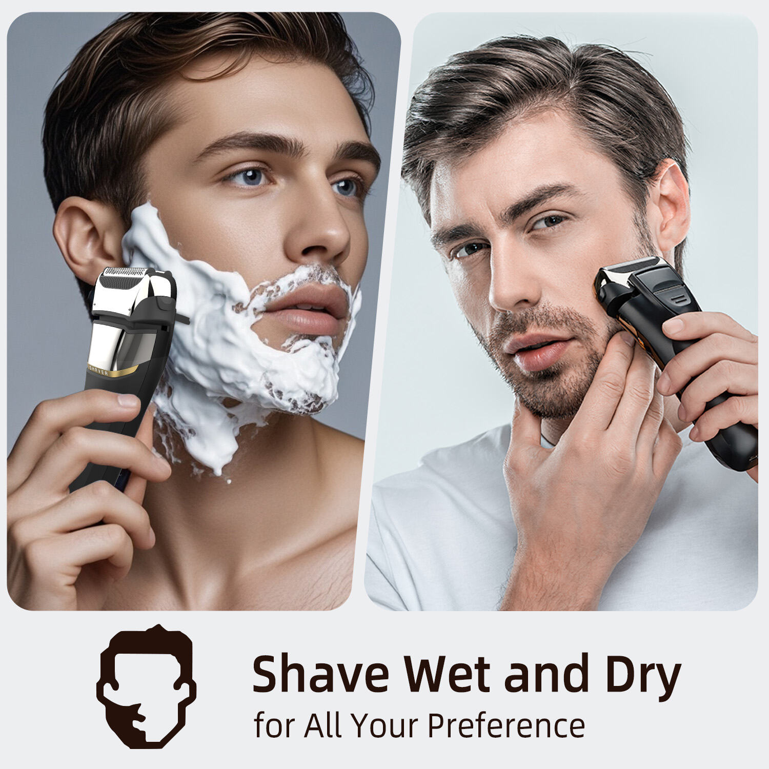 Våd- og tørbarbering: Velegnet til både tør- og vådbarbering, hvilket sikrer maksimal bekvemmelighed på arbejdet eller derhjemme.
