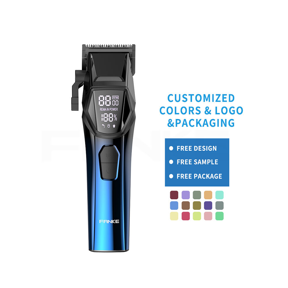 For B2B partners, the FK-9007’s factory customization options are a key advantage. Its metal body can be treated with spray painting or electroplating, with color choices including blue, gun color, or black—allowing you to align the clipper with your brand identity (e.g., gun color for a luxury salon, blue for a modern barbershop). FANKE’s OEM/ODM services take customization further: add your logo, adjust packaging, or modify accessories to create a fully branded product.