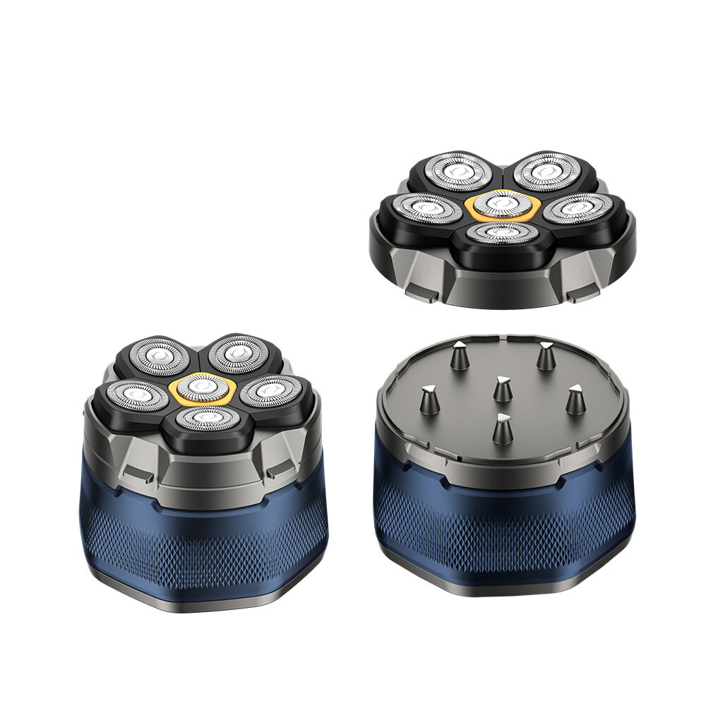 •Alat Cukur Kepala: Kepala pisau utama magnetik dengan 6 bilah untuk perawatan kepala botak yang halus.