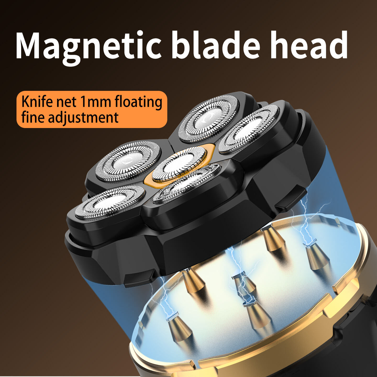 • Rasoio per testa: La testina principale magnetica con 6 lame per una perfetta rasatura del cranio.