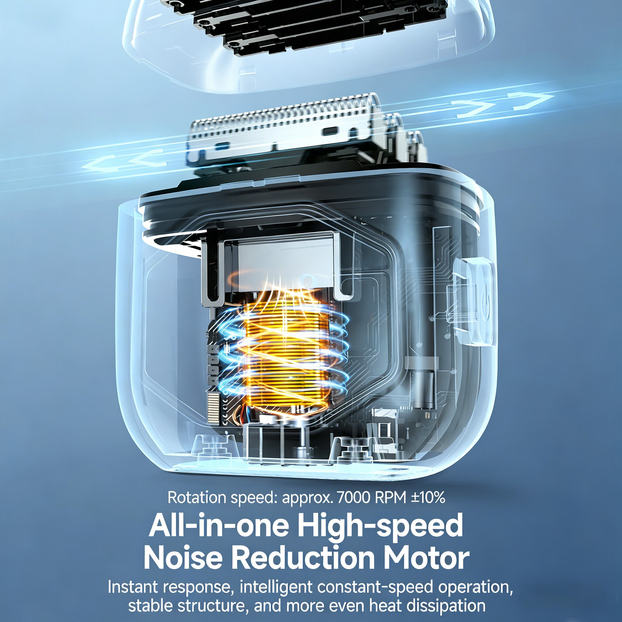 High-Efficiency Cutting Technology: Features a reciprocating design with 5 magnetic suction cutter heads that fit facial contours closely. It delivers a clean, thorough shave while minimizing snagging and pulling for a smooth, comfortable grooming experience. The magnetic detachable design allows for easy disassembly and cleaning.
