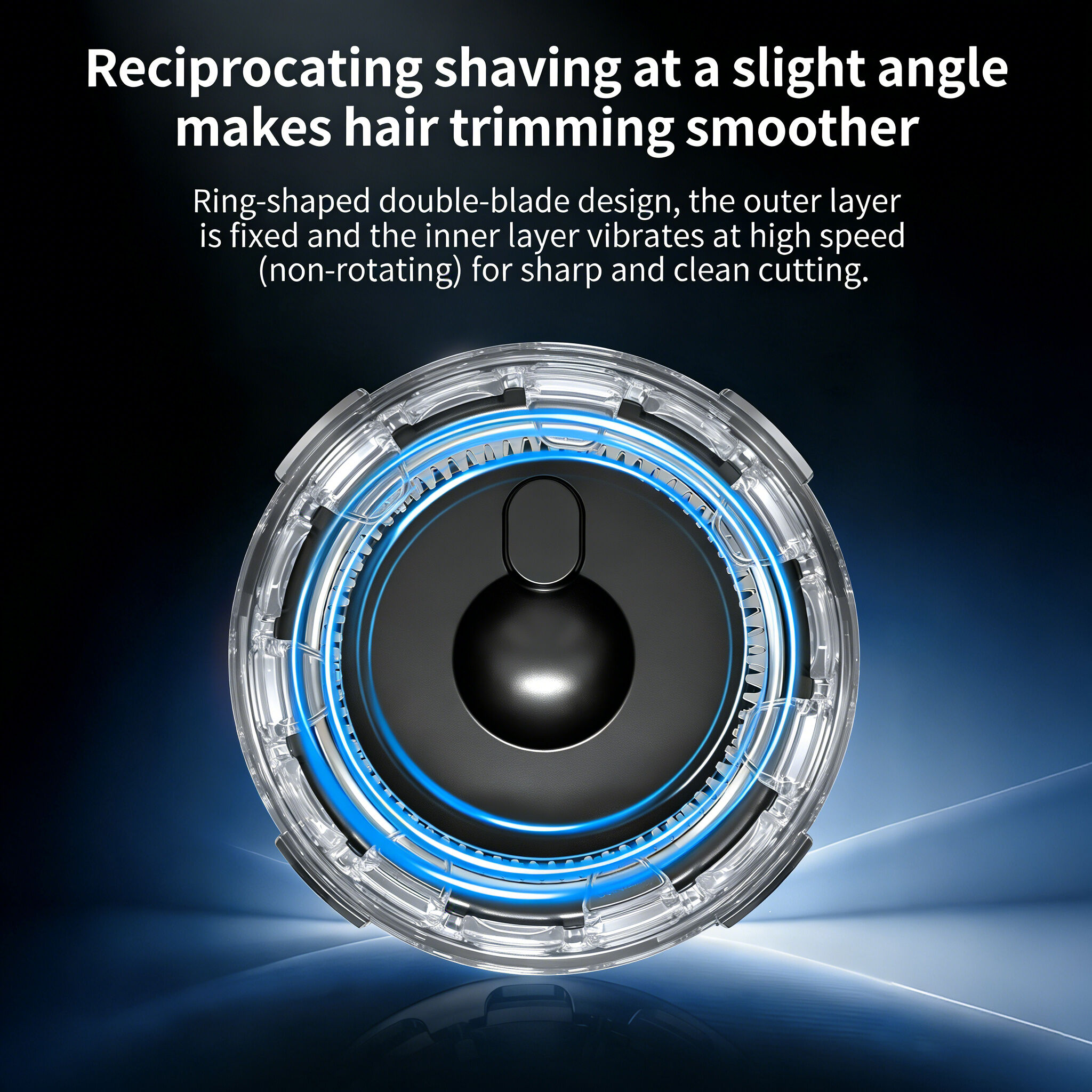 High-Efficiency Cutting Technology: Features a rotary design with independent floating cutter heads that adapt to various head contours. It delivers a clean, uniform cut—effortlessly creating a crisp buzz cut—while minimizing snagging and pulling for a smooth, comfortable grooming experience.