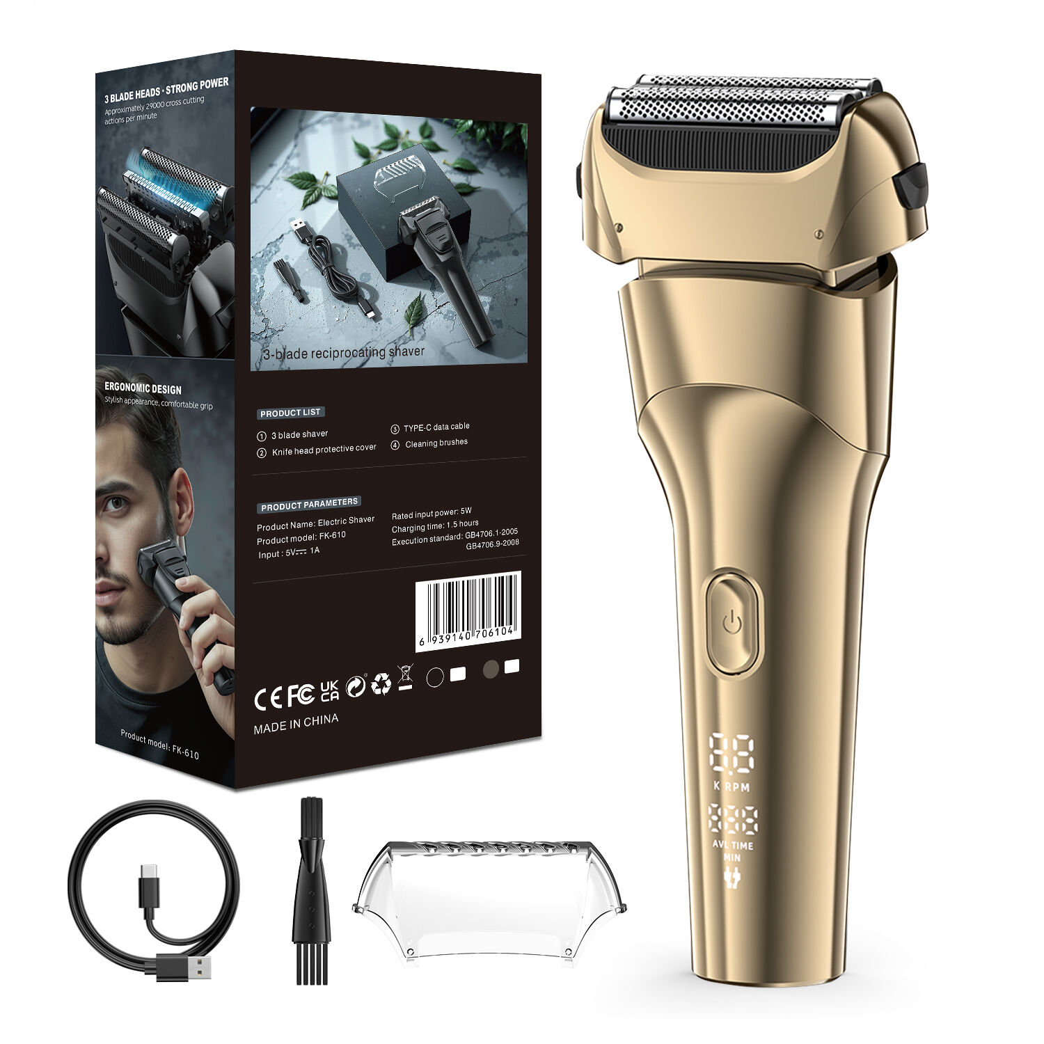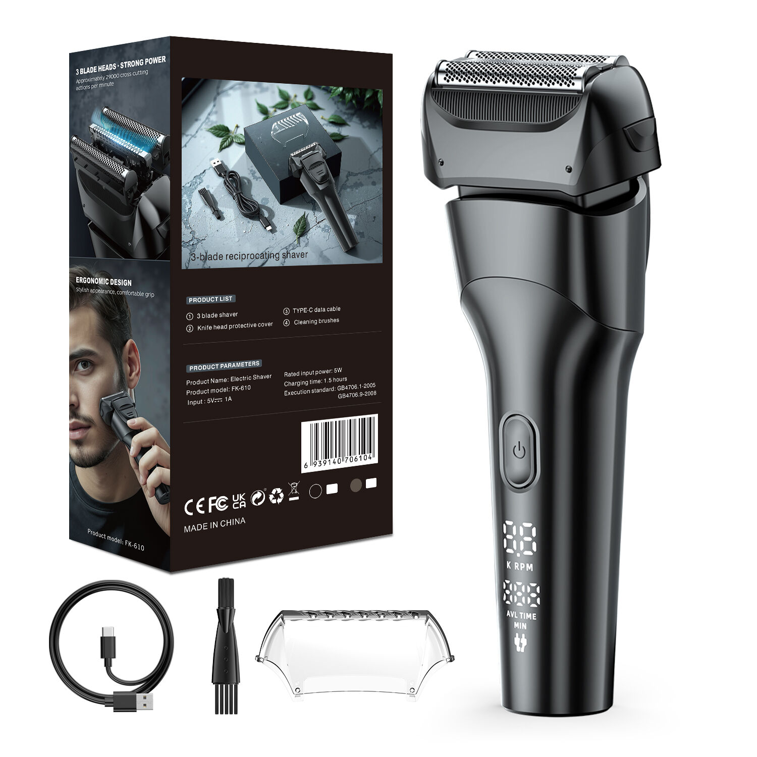 Model FK-610 został zaprojektowany z myślą o użytkowniku, dzięki czemu codzienne golenie staje się szybsze, bardziej komfortowe i efektywne: