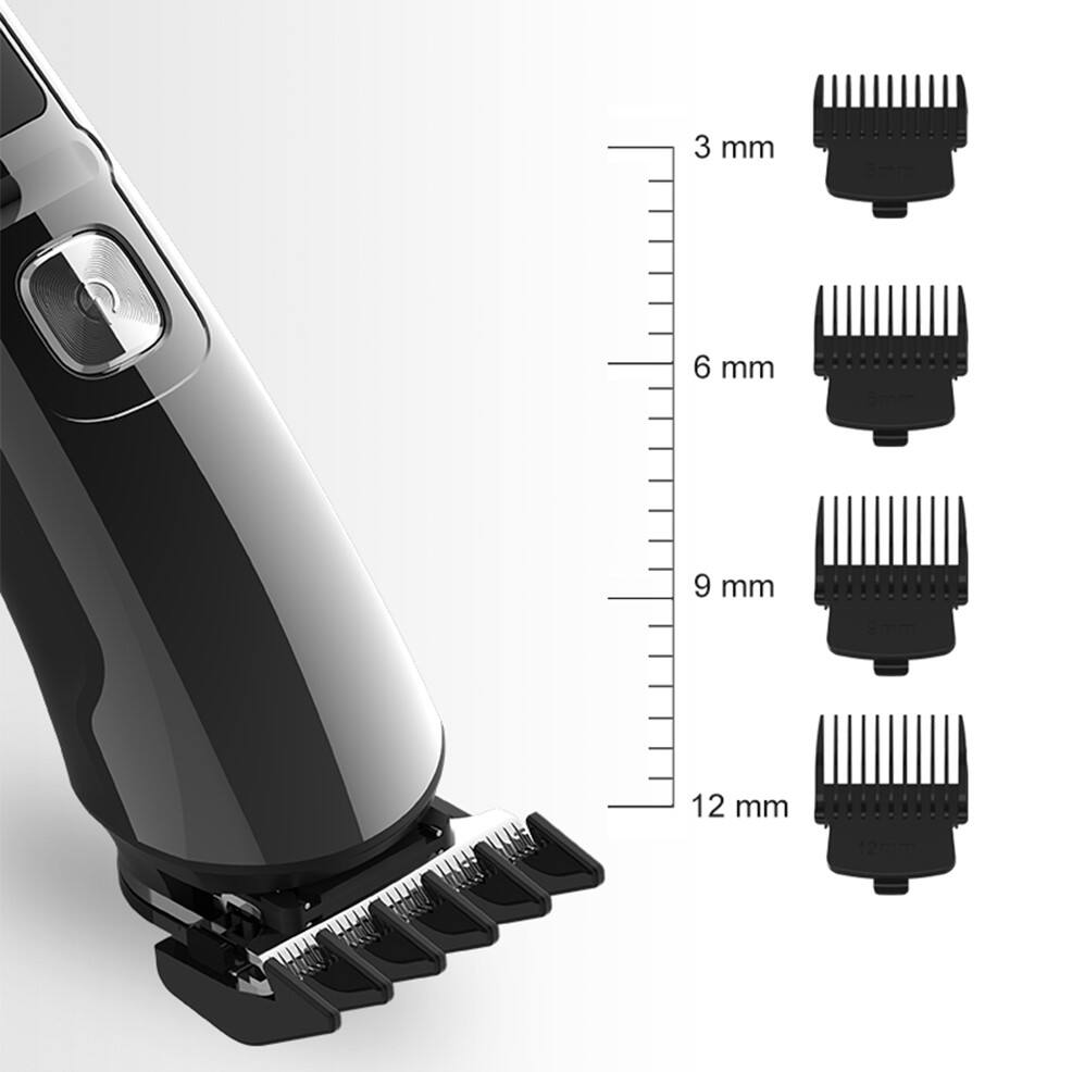 1. Four limiter combs: 3mm, 6mm, 9mm, and 12mm for custom trimming lengths.