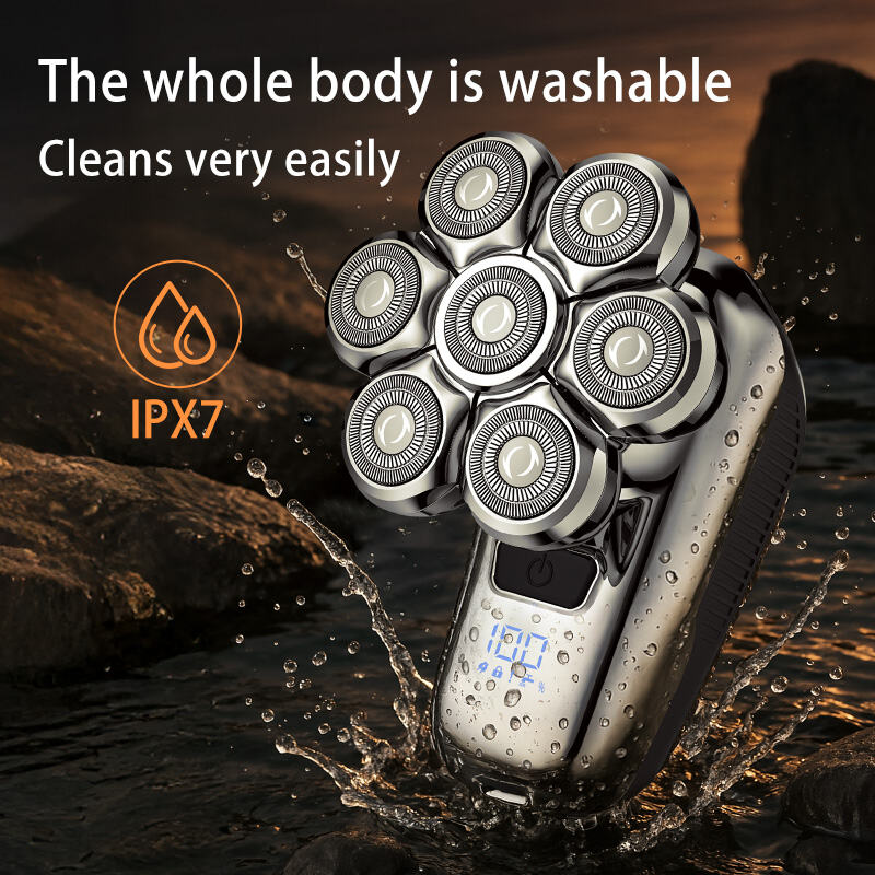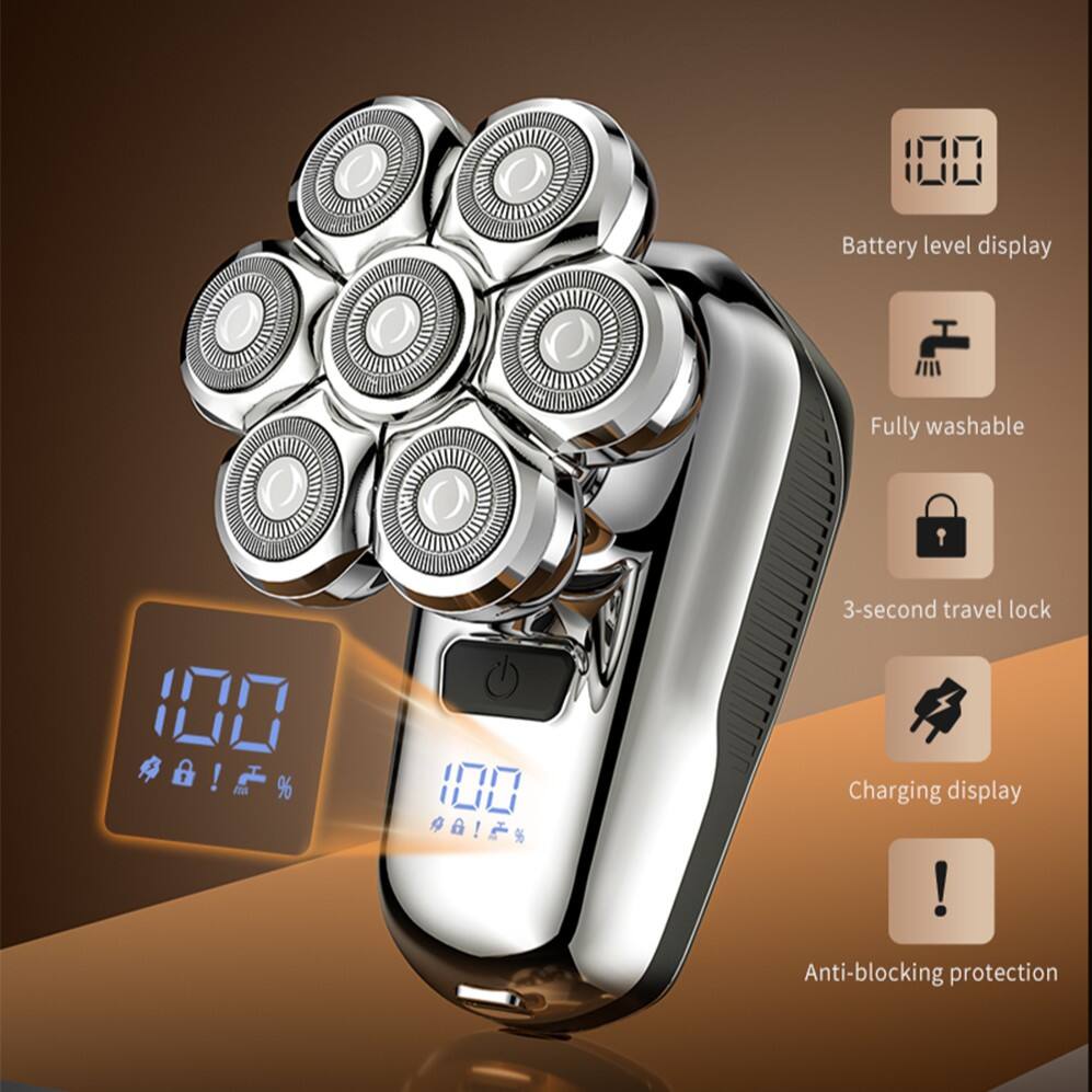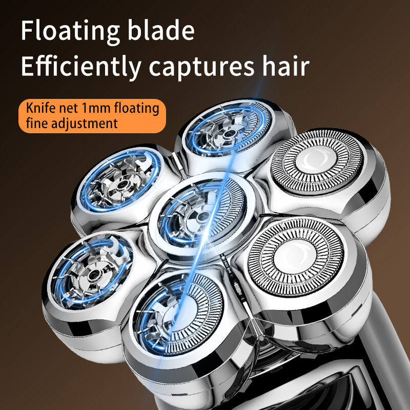 1. Sjubladig magnetisk huvud: Upplev en närmare, jämnare rakning med dess avancerade sjubladiga design som effektivt anpassar sig till ansiktets och huvudets konturer.