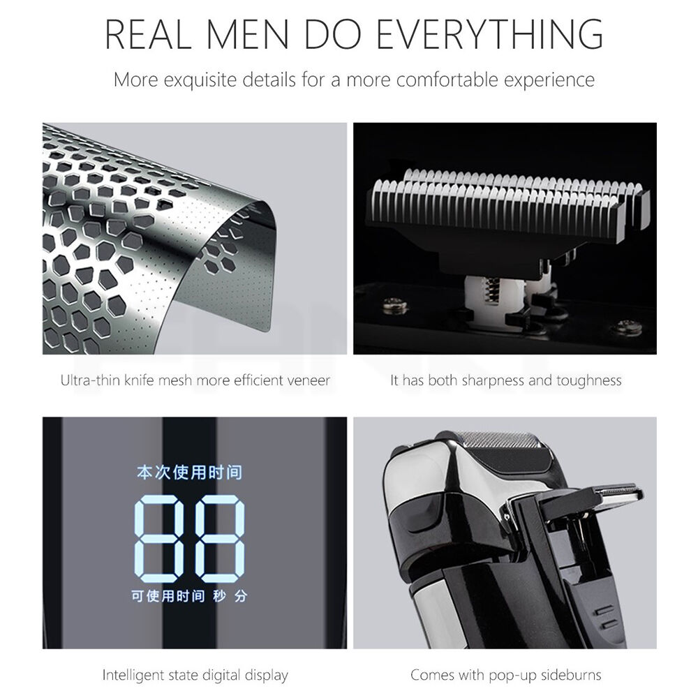 Stay in the know with the shaver’s intelligent digital display, which provides real-time feedback on power levels, charging status, and cleaning reminders. Never be caught off guard by a dead battery— the power display lets you plan charging sessions in advance. When it’s time to clean the shaver, the washing reminder alerts you, ensuring optimal performance and longevity.